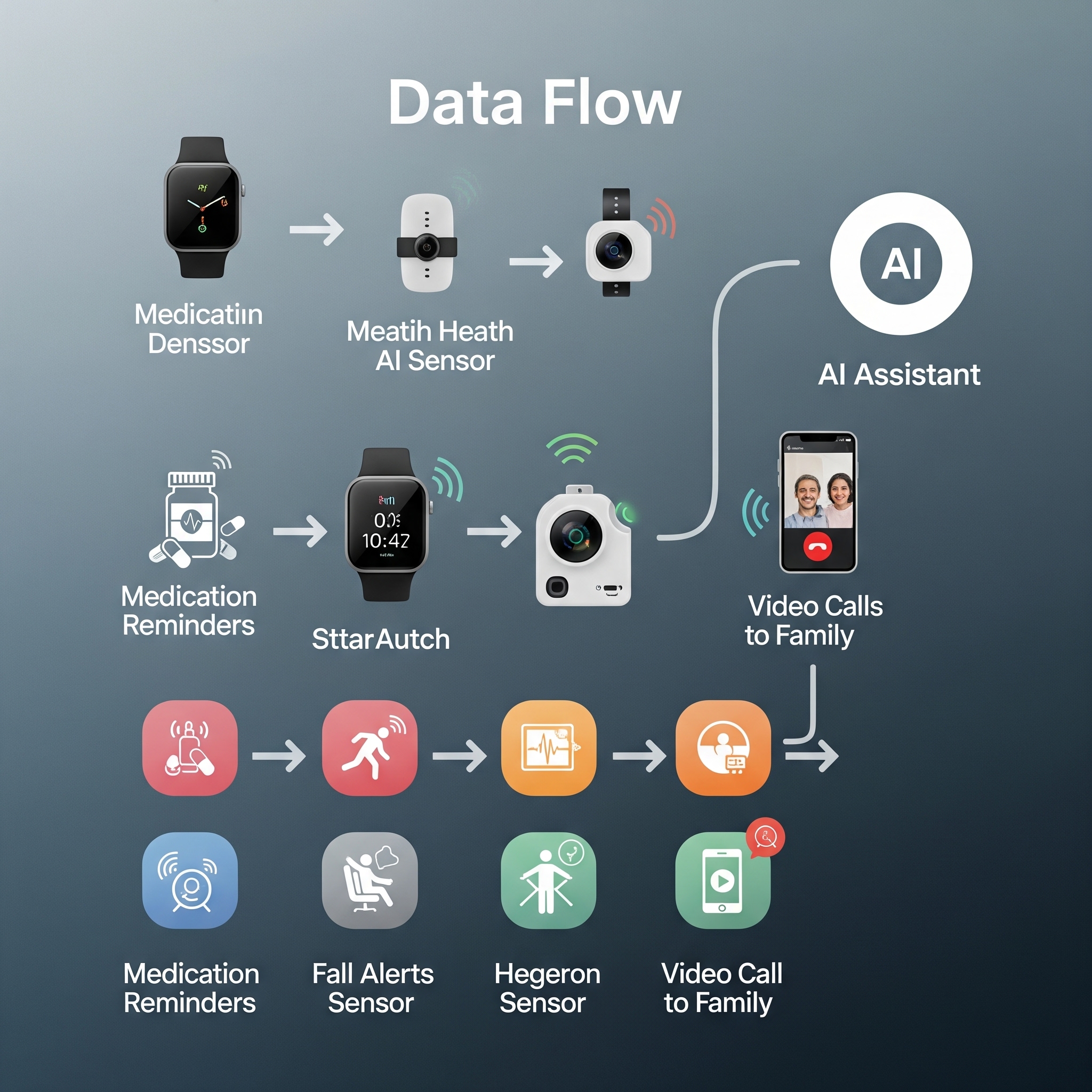 - Monitoraggio dei Parametri Vitali: Dispositivi indossabili (smartwatch, braccialetti intelligenti) e assistenti vocali possono raccogliere dati vitali come battito cardiaco, pressione sanguigna (es. Blood Pressure Companion), e qualità del sonno, identificando anomalie e inviando alert a familiari o medici.